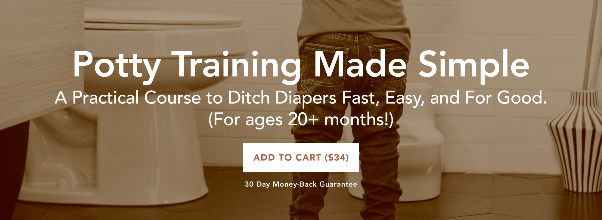 It’s never too early to start preparing yourself and your toddler for potty training! Whether you’re six days or six months away from actively potty training, the sooner you begin the course, the better prepared you’ll be - which will result in a smoother, faster, pressure-free process for you and your kid. And if you’re still not sure when you should start potty training, this course will help you determine the exact right timing for you and your little one. (And remember - you’ll have lifetime access to the course, so whenever you’re ready to start actively potty training, the course will still be there for you!)
